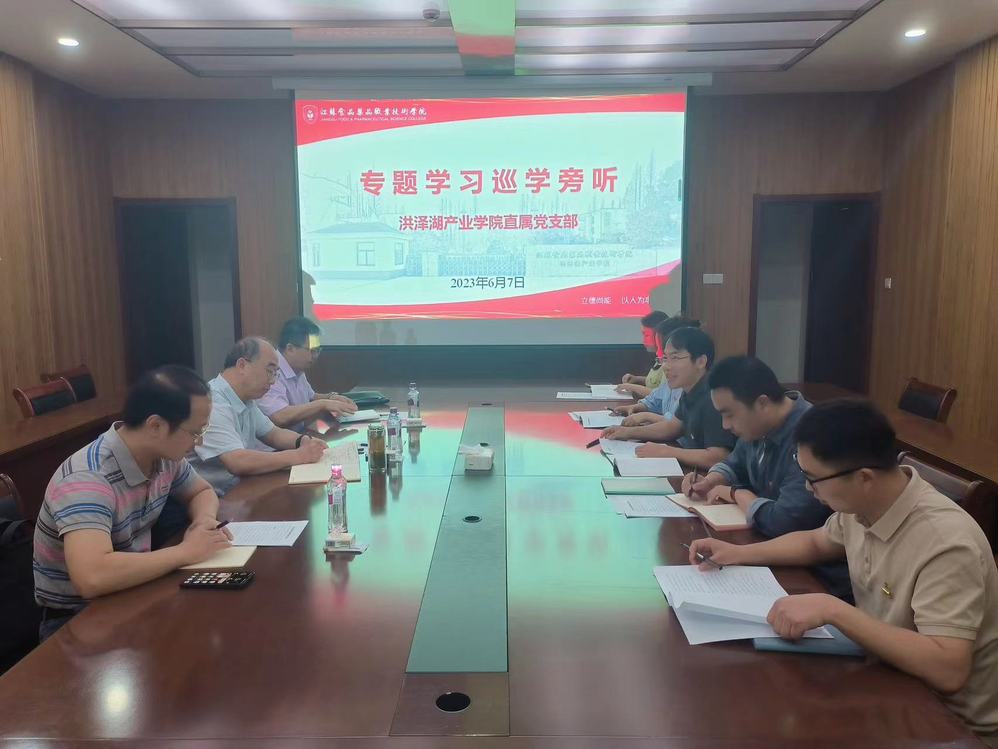 听取发言后,陶书中对直属党支部的学习成效表示肯定,谈了三点建议:一是着眼决策搞调研。产业公司地处洪泽湖畔,是个“充电赋能”的好地方,承载公司办学空间拓展的希望,要通过调研为更大规模员工入驻提供决策依据。二是分析问题谋举措。要结合首批员工入驻后压力测试情况,以及运行过程中师生遇到的安危冷暖、急难愁盼问题,深入分析、充分论证,进而提出具体明确、切实可行的办法。三是解决问题促发展。要聚焦做好师生的兜底服务和后勤保障,竭力解决师生的吃住行,适时举办文体活动,栽植时令花卉,扮靓多彩校园。